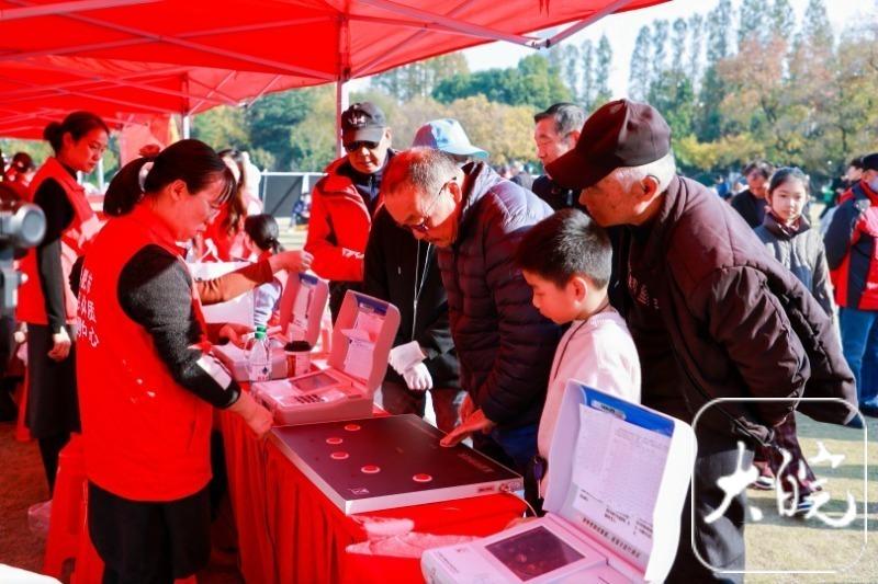 五大功能区全程开放、各有特色:健身互动区的投篮、投壶等有奖游戏让市民在玩乐中感受体育魅力;国民体质监测区的专家团队现场为市民开具个性化运动处方,提供精准健身指导;体医融合区的专业医生免费提供血压测量与健康咨询,践行“运动是良医”理念;爱心义卖与募捐区的爱心物资、助农特产备受青睐,所有义卖善款将全部用于支持“和健身”俱乐部公益项目发展,让健身热度转化为实实在在的爱心力量。